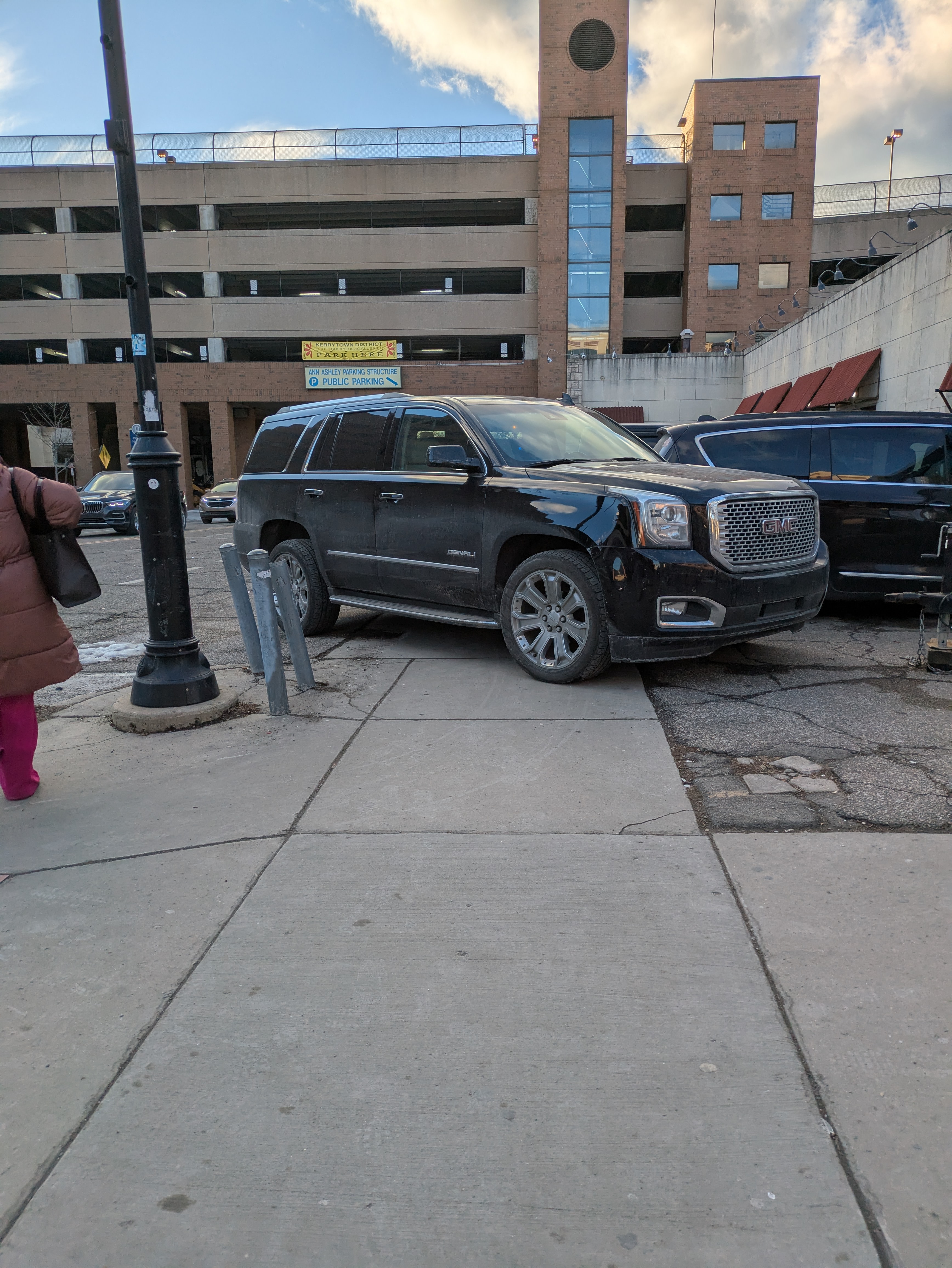 When preparing the Project design, City staff observed that the Ann Street curb cut for the property at 201 North Main Street is a traffic hazard and in need of safety improvements. Currently, parking at 201 North Main Street is on the Ann Street side of the building via a 75-foot-long curb cut which may have been a driveway opening long ago. The east end of the opening is approximately 4 feet from the Ann Street crosswalk. Although there are no marked spaces, there is presently space for approximately eight cars to park perpendicular to Ann Street. However, in six of these spaces, there is only 12 feet from the building to the public sidewalk. Because a typical vehicle is longer than 12 feet, vehicles are routinely parked on the adjacent Ann Street public sidewalk creating a complete or partial obstruction of the sidewalk. Parking a motor vehicle on the sidewalk is prohibited under City Code, Sec 10:56(1) and Sec 4:22, and State law, MCL 257.674(1)(a).